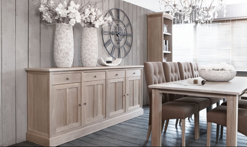 Deze woonkamercollectie in landelijke sfeer met hedendaagse lijnen is zeer uitgebreid.