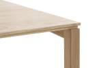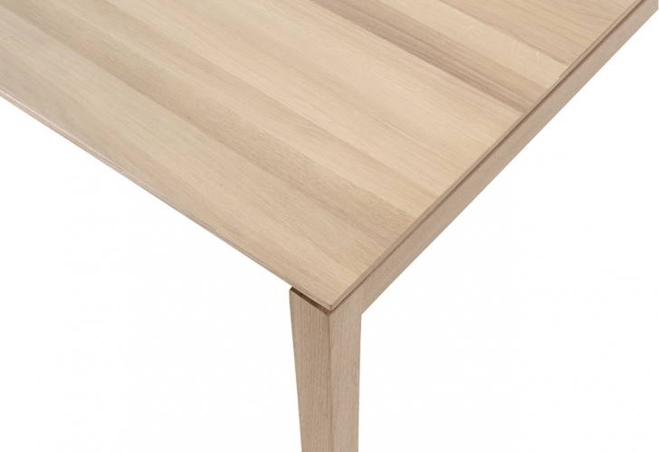 Deze tafel in massief eiken of noten is verkrijgbaar in meerdere tinten en afmetingen, ook rond en vierkant. Zelfs volledig maatwerk behoort tot de mogelijkheden. In de reeks zijn ook bijpassende salontafels voorzien.