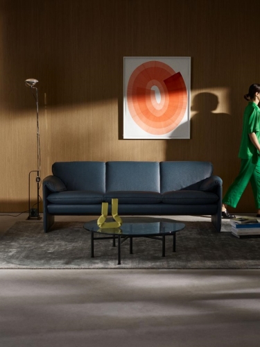 Leverbaar als fauteuil, 2-zits, 2,5-zits en 3-zitsbank. Met bijpassende poef. Er zijn daarnaast ook extra comfortopties: zithoogte +3 of -3 cm, zitdiepte -3 cm in stof of in leder.