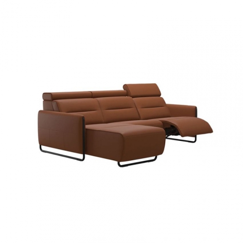 Dit salon met details op de armleuning in hout of in metaal (telkens in verschillende uitvoeringen verkrijgbaar) biedt een excellent zitcomfort door de aangenaam zachte zittingen., de mogelijkheid om electrische relaxfuncties in te bouwen en de verstelbare hoofdsteunen. Het is zowel in stof als in leder verkrijgbaar.