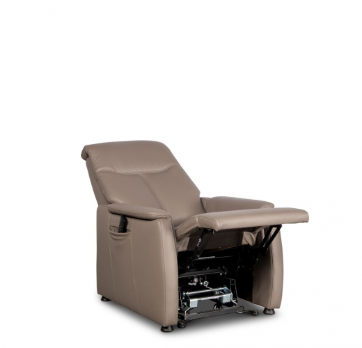 Deze comfortabele relaxzetel is voorzien van 3 motoren (hoofd-, rug- en voetensteun apart verstelbaar) met eventueel extra opstaanhulp.
