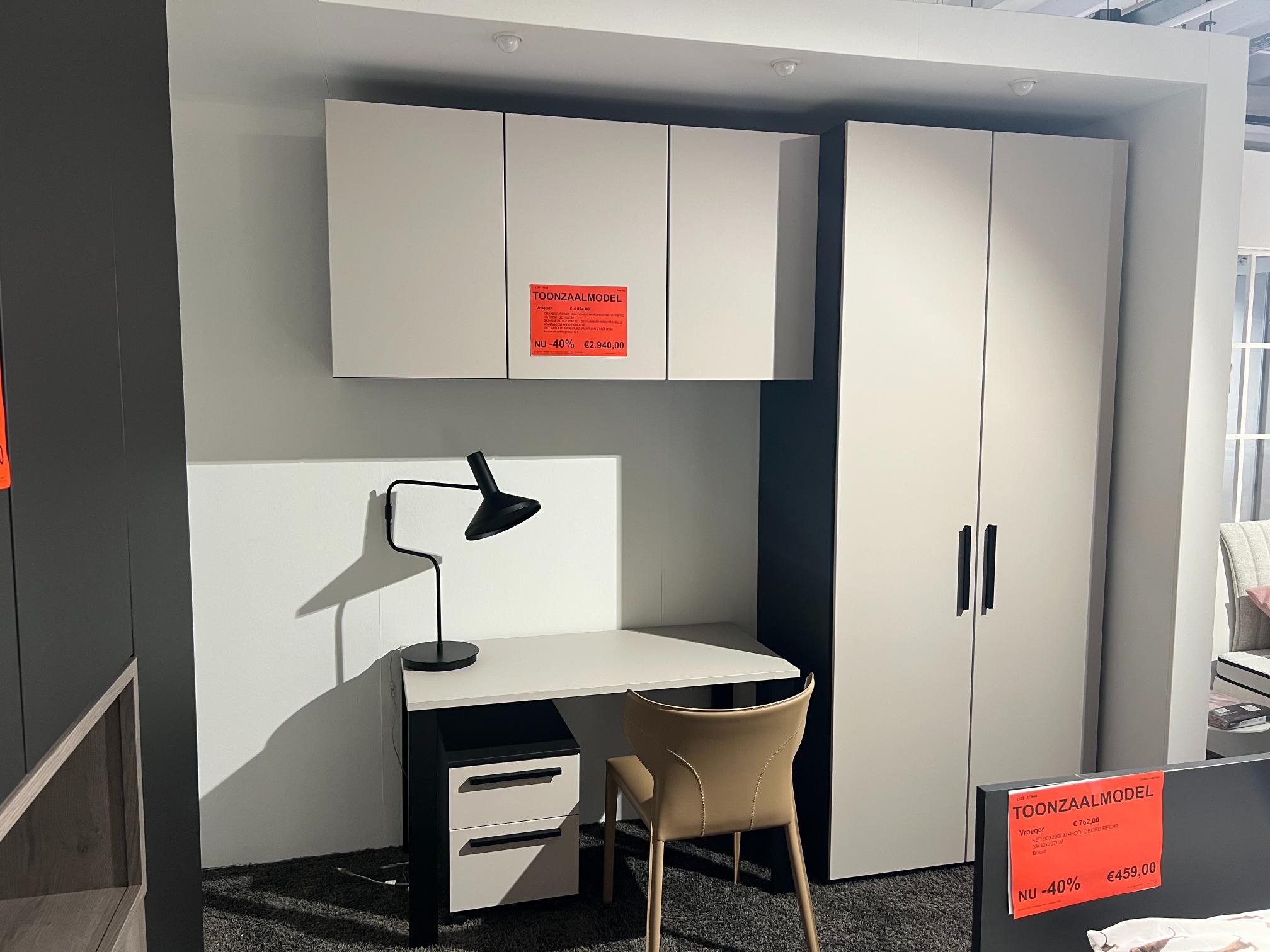 Kastencombinatie met hangkasten en bureau met ladenblok
