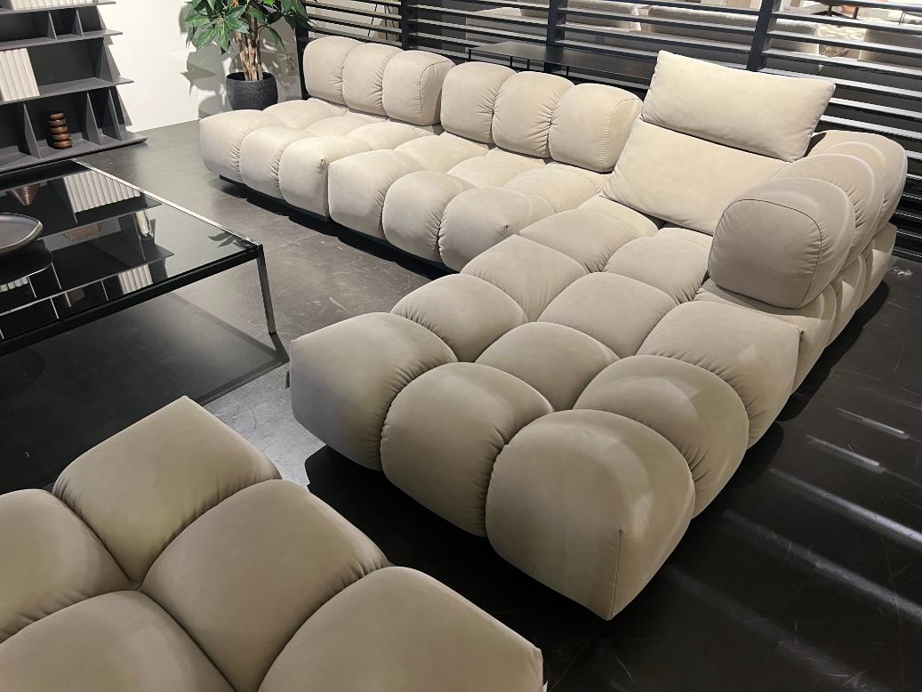 Designsalon, salon kan ook in spiegelbeeld gemonteerd worden, met het 'longchairgedeelte' aan de linkerkant