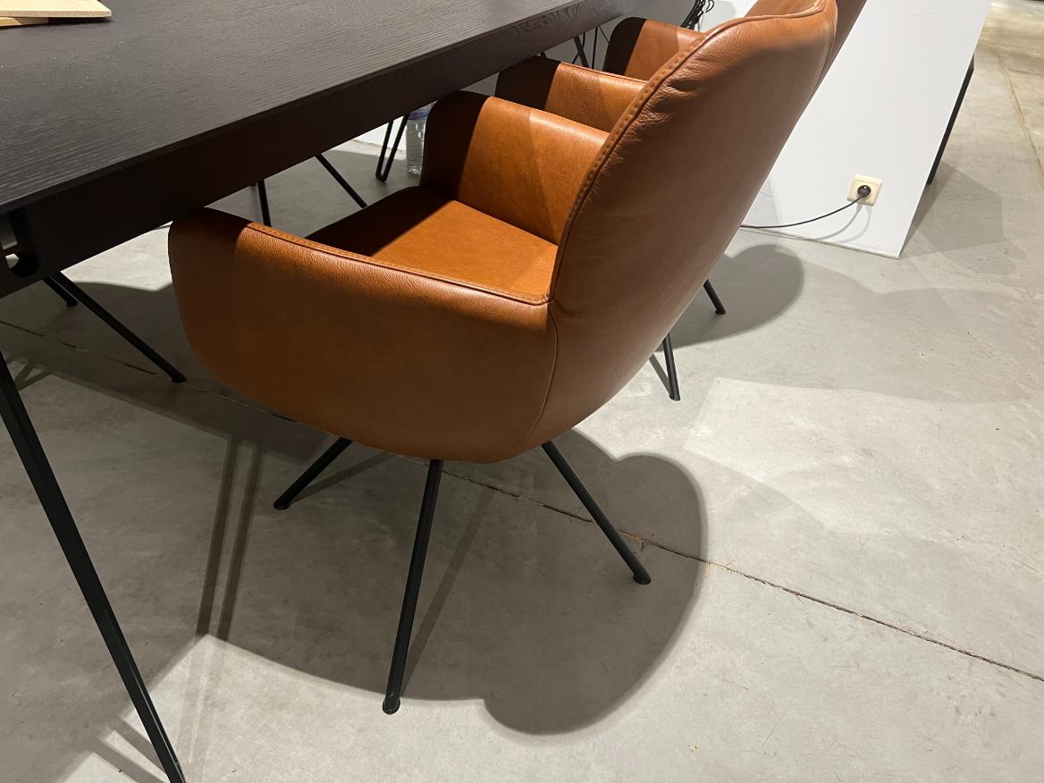 Set van 4 comfortabele armstoelen in een onderhoudsvriendelijk leder. De roestbruine kleur is tijdloos, past in veel interieurs.