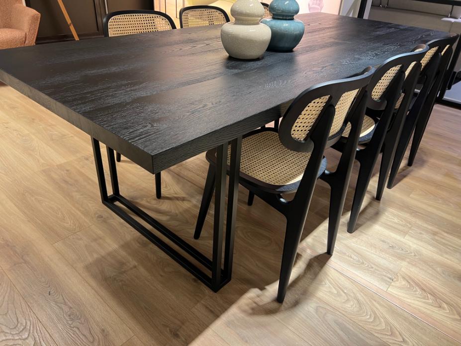 Eik zwart gevernist - Poten: zwart metaal - Stoelen: eik zwart + cannage naturel